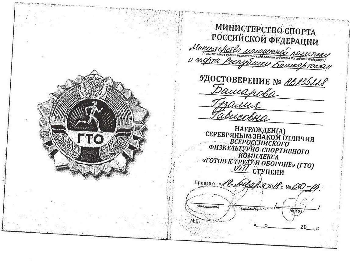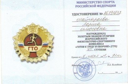 Удостоверение ГТО