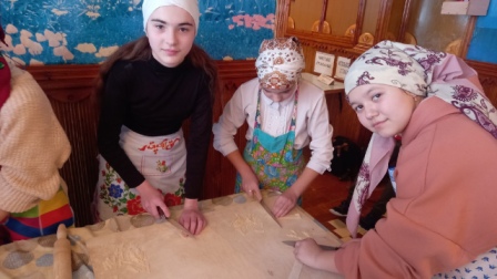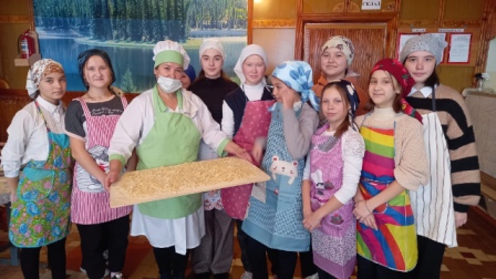С целью формирования у обучающихся основ культуры питания за счёт развития у них кулинарных навыков и умений, социально-бытовой компетентности, популяризации особенностей национальной кухни 26 января в МБОУ Школа-интернат с.Новокабаново прошёл Флешмоб "Мое национальное блюдо". Сегодня девочки вместе с поваром Яхиной Р.Р. научились готовить башкирское национальное блюдо "Тукмас". Мероприятие пошло очень познавательно. Девочки не только отточили мастерство приготовления тукмаса, но и узнали очень много кулинарных секретов от нашего повара!