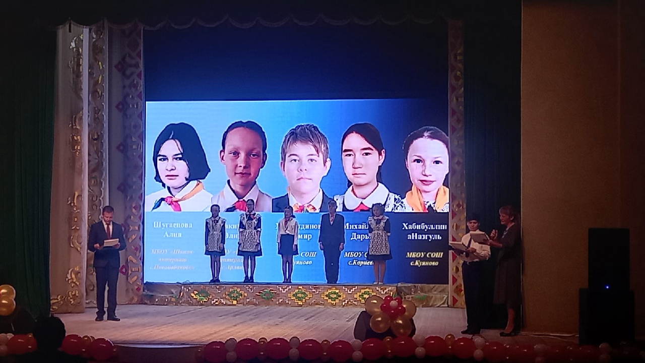Наши обучающиеся Камалиева Гульназ и Тимергалиева Роксана стали победителями в номинациях "Лидер в учебе " и "Лидер в спорте " соответственно на празднике "За честь района-2022", который прошёл в районе уже в 15ый раз. Поздравляем наших победителей и финалистов и верим в дальнейшие их победы!!!