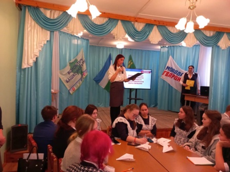 Перед ребятами выступила ведущий эксперт ФГБУ "Росдетцентра" Аза Галихановна Белоус. Советники директоров по воспитанию, эксперты ФГБУ "Росдетцентра" Шайгараева Л.И. провела тренинг "Навигация - Лидер", а Минникаева И.Т. раскрыла тему "Территория развития лидерства".