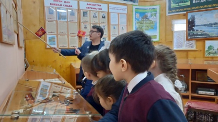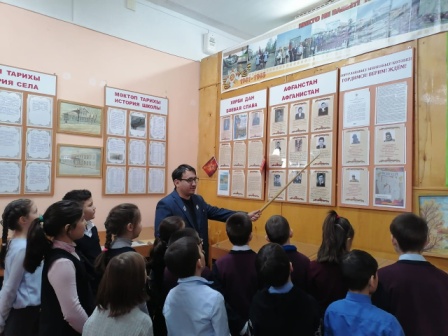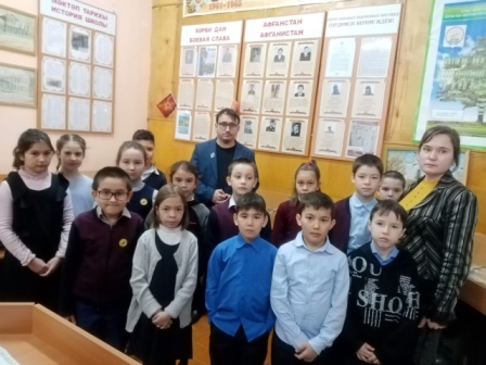 В преддверии Дня Защитника Отечества в музее школы-интернат с.Новокабаново побывали обучающиеся начального и среднего звена. Руководитель музея Муллагалиев В.Р. и учитель истории Габдрахманова З.М. рассказали о специальной военной операции, её участниках из с.Новокабаново и Саузово и показали уголок "Гордимся!Верим!Ждём!" с информацией о СВО.
