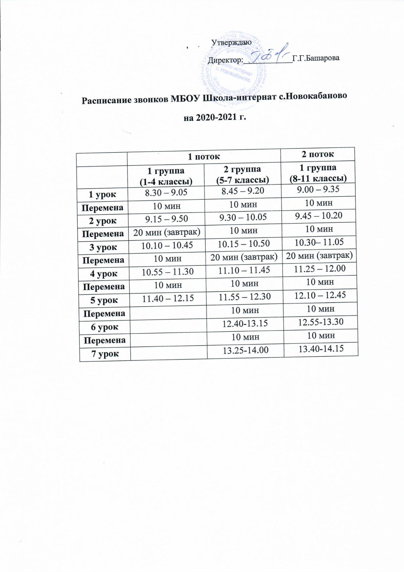 Расписание звонков