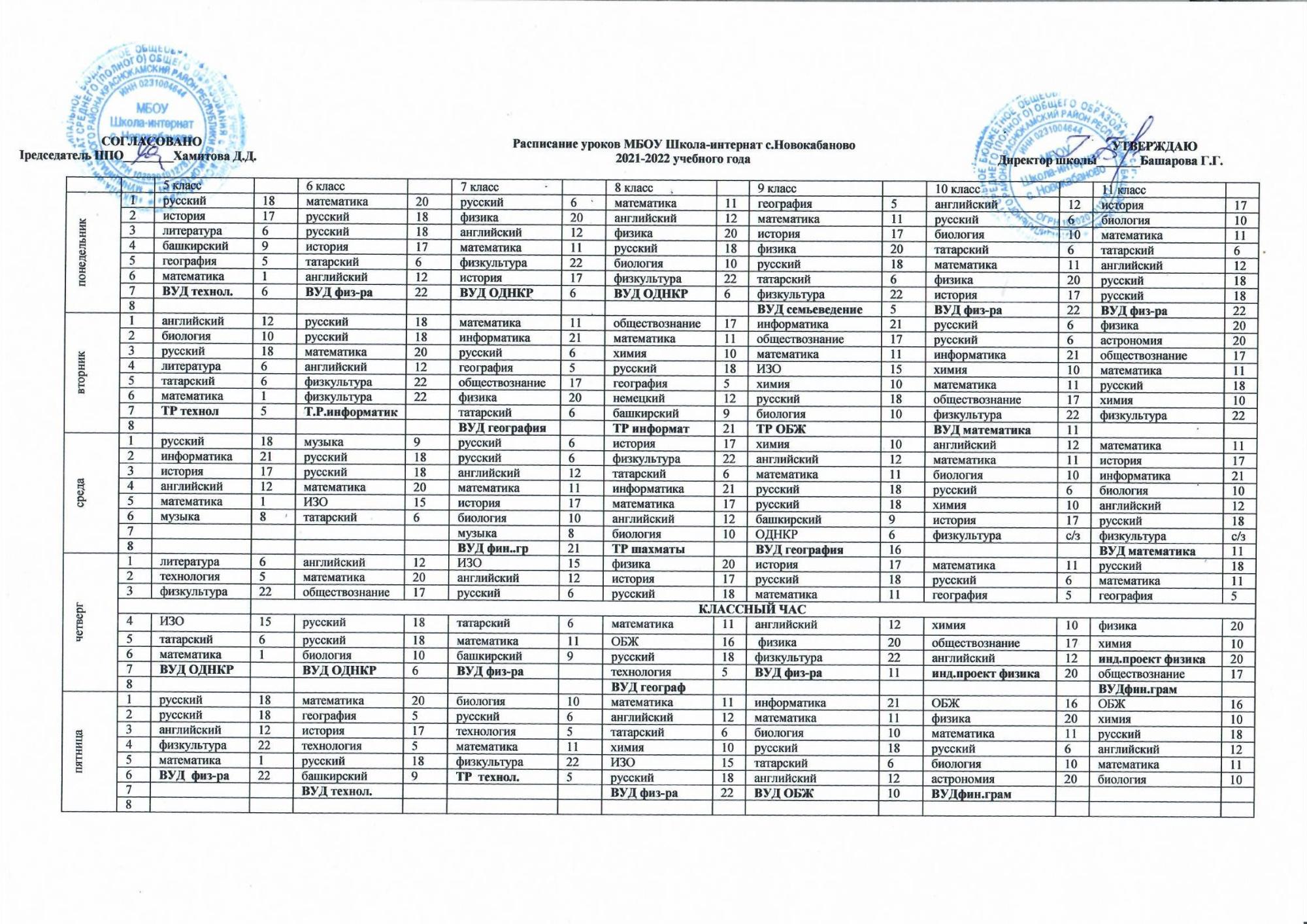 Расписание уроков 5-11 классов на 2021-2022 уч.г